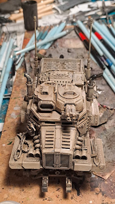 This week has been a mix of building on Opus and getting some base layers done on the Taurox. So far it has mainly been drybrushing and washing. Not to much to say really. I am happy with how it is turning out. Once I am done with theses layers I will go in with some sponge weathering and add rust and grime. I think it will look great with the other Desert rats.